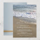 An elegant yet simple wedding invitation featuring an artistic design of waves flowing on the beach.
