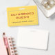 This simple badge design features the message "AUTHORIZED GUEST!", and a customisable company name or other custom message. It also features a double-line border. A badge like this could be used to identify that somebody at a workplace or business is an authorised guest/visitor. [~Z0000307]