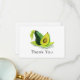 A thank you card with a nice watercolor painting of a full avocado paired with a half avocado sitting on a bed of leaves. Vivid green and yellow shades really make this fruit come to life.