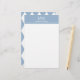 A large white monogram is at the top. A line of white display text is under the monogram for the name or a custom message. All text can be edited or deleted. This personal stationery has a baby blue header. A geometric pattern is on the back of the sheet.