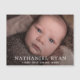 Modern boy birth announcement magnet featuring a clean and minimalist design with baby's name in a large serif font along with his birth stats over your favourite full bleed photo. This simple yet elegant magnet is a great way to announce the arrival of your baby boy.
