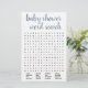 Find the baby words! Simple baby shower or gender reveal word search party game in basic black and white featuring a fun, casual hand-lettered script. The classic design includes a modern handlettered quote typography overlay. For other colours or matching products, please visit the JustFharryn Zazzle store, or contact the designer, c/o Fharryn@yahoo.com All rights reserved. #bohochic #zazzlemade