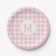 Simple Basic Baby Pink Gingham Monogram Paper Plate