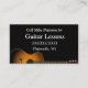 Guitar Lessons business cards, with black background and acoustic guitar on front.