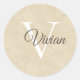 Simple Beige Watercolor Monogram Name Classic Round Sticker