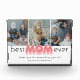 Modern mother photo block featuring 3 family pictures for you to replace with your own memories, the saying "best mum ever", and the kids names.