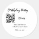 Simple birthday party website barcode QR add name Classic Round Sticker