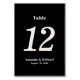 With simple minimalist styling and a slight retro vibe, this wedding table number in black with ecru beige lettering repeats on both sides of the card. Personalise with the bride and groom's name and wedding date. Create a separate table number card for each table number you need and add to cart as you create each one. Once you have all your table numbers, complete the checkout process.