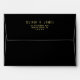 A very elegant and chic minimalist black and gold vintage wedding return address envelop. With solid black colour and gold art deco typography script of the names and return address. With golden gatsby deco inside the envelope.