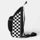 The pattern is a black and white chequerboard on the sides. The front is black.