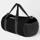 You can edit the text on this black duffle bag to show a custom message. As shown, the text has a child's name and dad. (Shown: Johnathan's Dad) The text is white.