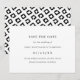 Minimalist save the date card featuring a simple design with your details alternating between a serif font and an italics font. The backside has a black and white pattern which may be removed by clicking the "customise" button. The text and background may be changed to any colours you wish. A chic and modern design to announce your wedding date in style.