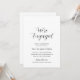 Contemporary black and white engagement party invitations featuring a simple and minimalist layout with "We're Engaged" in an elegant calligraphy script. A modern design that goes well with any style of engagement party.