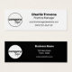 Simple, modern, two-sided design in black and white. This unique monochrome template has custom text and a logo on both sides of the template. One is on a white colour with black text with details of the employee and staff member, while on the other side is white custom text on a black colour background. This side has details pertaining to the company - name, website, street address.