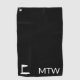 Simple Black and White Monogram with Golf Flag Golf Towel
