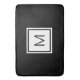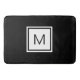 A black letter is on a white that is surrounded by a white and black double border. This black and white bath mat can be personalised with your monogram/initial.