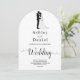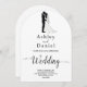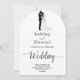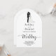 This elegant black-and-white arch wedding invitation is perfect for a modern wedding. The simple design features elegant black calligraphy and a bride and groom illustration on a clean white background. The invitation card includes the wedding details on the back instead of paying for a separate enclosure card.