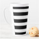 Minimalist design with black and white stripes. See my store for matching tablecloths, placemats, coasters and more, including a mix-and-match with plain black and white and black and white polka dots. The colour of these stripes can be easily changed to your preferred colour. If you need any assistance, or if you need a different colour combo - please contact me, and I will gladly assist where I can. Latte mug.