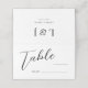 A minimal and simple table number place card for your wedding, featuring a modern script font with the word "table" and a blank line to fill in the table number and guest's name. Personalise the back of the card with the bride and groom's names, and the wedding date.