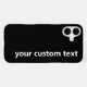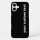 This affordable, black phone case has white text that you can edit to show a custom message.