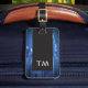 Elegant customisable luggage tag with a professional studio photo of blue circuit board, black stripe and monogram.