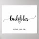 This simple black calligraphy bubbles sign is perfect for a rustic or modern wedding. The minimalist design features an elegant brush script font and a lovely feminine heart.