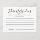 These simple black calligraphy date night concept cards will look great in a rustic or modern wedding reception or bridal shower. Personalise these cards with the bride and groom's names.