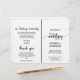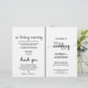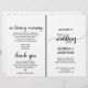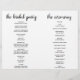 This simple black and white calligraphy wedding program is perfect for a rustic or modern wedding. The minimalist design features an elegant brush script font and a lovely feminine heart. Include the name of the bride and groom, the wedding date and location, a short quote, thank you message, order of service, bridal party and an "in loving memory" memorial.