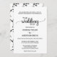 This simple black calligraphy formal wedding invitation card is perfect for a rustic or modern wedding. The minimalist design features an elegant brush script font and a lovely feminine heart. The backing features a classic leaf and branches pattern.