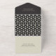 These fun all-in-one wedding invitations feature a vintage deco style design in black and cream. Your guests can r.s.v.p with the tear off pre-addressed section. Invitation wording includes placeholders for the wedding couple names, wedding date, time, venue, venue address and reception information. The front has a flower pattern with hearts as their centres.