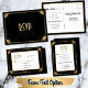 The front of this simple, elegant art deco floral save the date postcard features vintage script and sans serif typography in real gold foil on a black background, surrounded by a minimal border with with retro flowers in the corners, combining sophisticated glamour with minimalism. The back is a minimal solid black. You can customise the text by editing the product template to personalise this card for your own wedding.