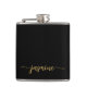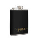 Simple Black Gold Girly Monogram Name Signature Hip Flask