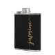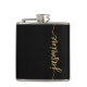 Simple Black Gold Girly Monogram Name Signature Hip Flask