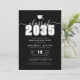 A sleek and modern graduation party invitation featuring black backgrounds on both the front and back for a bold, polished look. “Class of 2026” appears in large, eye-catching text at the top, with “Class of” shown in a soft light gray and the year in crisp white. A customizable graduation cap icon sits above for a classic finishing touch.