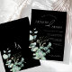 Simple Black Greenery Eucalyptus Monogram Wedding Invitation