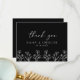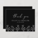 Simple Black Modern Floral Outline Wedding Flat Thank You Card