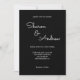 Elegant trendy hand lettered script wedding invitation in simple monochromatic black and white ,