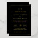 Simple Wedding Invitation featuring a modern yet elegant design with your two letter monogram at the top, a bold date layout and your details surrounded by a thin border. All design elements are printed with real gold foil over a black background. A chic and stylish Wedding Invitation that is great for a minimalist couple.