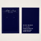 This earring display card features a simple and elegant black and white design. It depicts a pinstripe black border and matching modern and chic cursive typography on top of a plain navy blue background. On the back, it includes contact information that can be changed completely or personalized to your details. It's a professional, elegant, and stylish way to display your product with pride. (earring holes are printed markers only, puncturing must be completed by the customer)