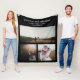 Modern fleece blanket featuring a simple and minimal design with a photo collage of three of your favourite wedding pictures over a black backgound. Above are your names in an elegant script along with your wedding details.