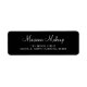 Modern return address labels featuring a simple design with your business name in an elegant white script font and two lines of text for your return address in a sans serif font, over a black background. These minimalist and chic return address labels are a great way to add a professional touch to your envelopes.