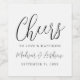 Elegant wedding wine labels featuring the phrase "Cheers to love and happiness" in black script lettering with a white background. Personalise the simple wedding wine label with your names and wedding date.