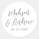 Simple Black Script Personalised Wedding Classic Round Sticker