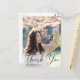 Send an elegant custom photo thank you card to your family and friends for your graduation. This modern design template features your photo with an overly in hand lettered black script that reads, "Thank You" with your name below. The back of the postcard has a thank you message you may personalise accented by watercolor pink cherry blossoms. Designed by artist ©Susan Coffey.