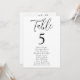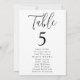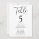 Modern wedding seating chart featuring "Table" displayed in a black script with the table number and guest names shown below on a white background. The design repeats on the back. To order the table number seating chart, edit each card with the table number and guest names and add it to your cart. Designed to coordinate with our Simple Script wedding collection.