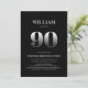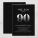 Invite your friends and loved ones to a surprise 90th birthday celebration with this stylish minimalist black and silver birthday party invitation.