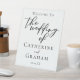 Simply chic and stylish, our minimalist winter wedding collection features elegant cursive typography for your modern event. Welcome your guests with a bold evening wedding pedestal sign with simple black script.
