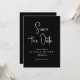 Looking for a modern and simple way to announce your big day? Our minimalist Save the Date invitation is perfect for introducing your guests to your wedding day. Featuring classic white typography on a black background that can be personalised, the backside also includes a QR code for guests to scan and visit your website for more details about the event. This stylish and practical design is sure to impress and let your loved ones know you're getting married.