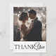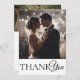 This simple and minimalist wedding thank you card is the perfect way to send love and heartfelt thanks. With sleek black typography on a crisp white background, contrasting elegant fonts add a stylish, contemporary twist to the sophisticated design aesthetic. Customise it effortlessly with two of your favourite cherished photos and add your personal heartfelt message. This versatile card is perfect for elegant, classic, vintage, chic, modern, boho, rustic, romantic, floral-inspired, and nature-themed weddings, ensuring a timeless appeal.
