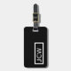 Elegant customisable black luggage tag with white frame and bold monogram.